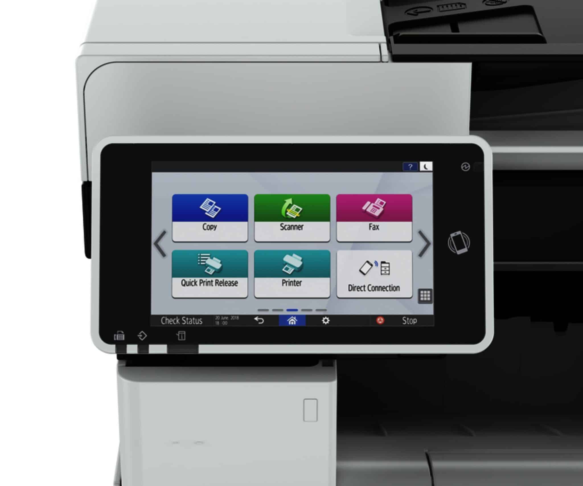 Det er desuden muligt at tilpasse dem til lige præcis jeres behov. Med printernes 7″ smart screen touch panel er det nemt og hurtigt at navigere i printerens funktioner og igangværende jobs. Desuden kan I fra Ricohs app-hjemmeside hente applikationer, der understøtter de funktioner, I har brug for.